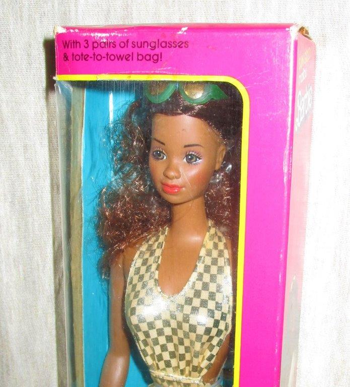 Sun Gold Malibu Barbie ©1983 uses the 1980s Teresa/Hispanic Barbie head sculpt. #Barbie #MalibuBarbie #fashiondoll #1980sBarbie