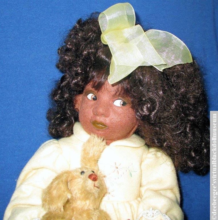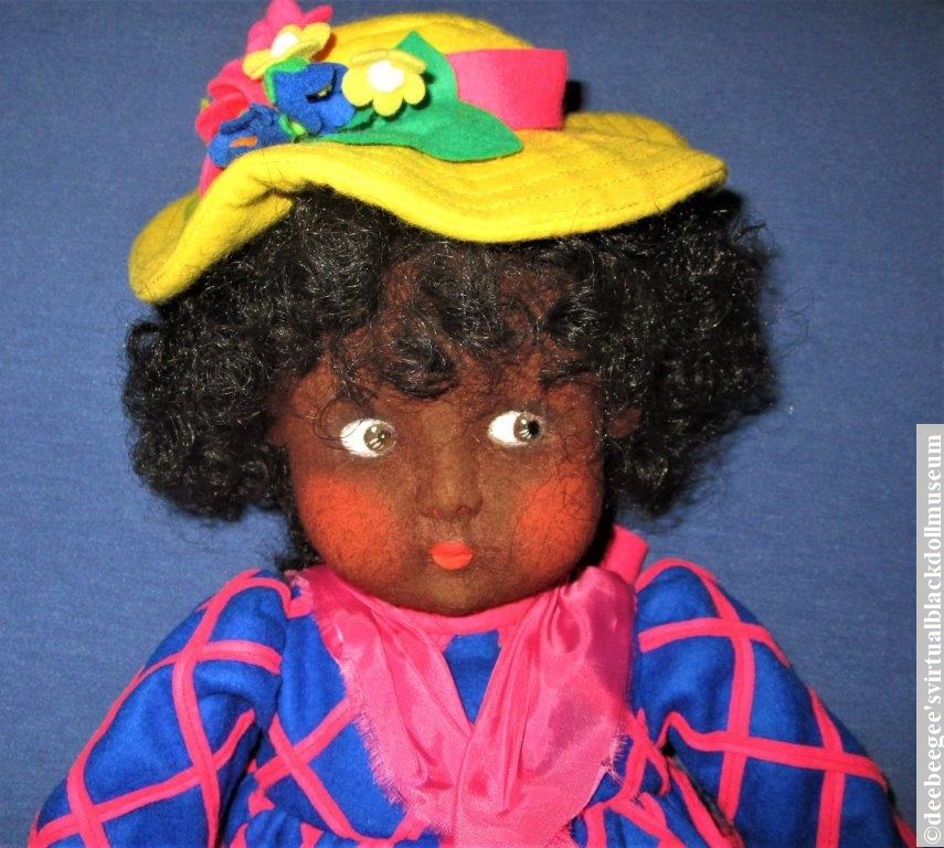 Tina is a felt artist doll by Debbie Richmond for MasterPiece Galleries from the year 2000. #blackfeltdoll #artistdoll #blackdoll #doll #collectibledoll