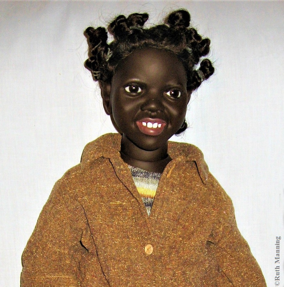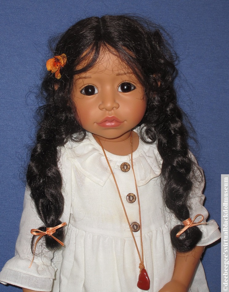 Made in 2002 in Germany, Challabre is a 27-1/2-inch hard-cast vinyl doll by Joke Grobben for Gotz. #artistdoll #Gotzdoll #Jokegrobbendoll #dollmadeingermany #blackdollmadeingermany