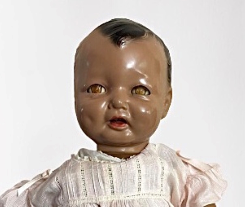 Baby Dainty, a 1920s composition and cloth doll by Effanbee, is featured. #babydainty #effanbee #composition doll #blackcompositiondoll