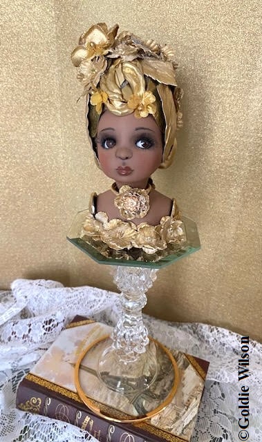 A one-of-a-kind porcelain candlestick doll by Goldie Wilson is curated for this installation and features other OOAK candlestick and vase dolls by the artist. #OOAKdoll #candlestickdoll #vasedoll #uniquedoll #decorativedoll #porcelaindoll #75thufdcconvention