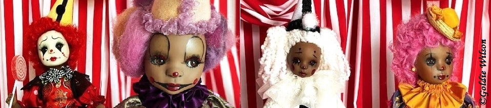 An ultra-limited edition of eight clown dolls by Goldie Wilson was introduced and sold at the 2024 Maryland Society of Doll Collectors’ “Under the Big Top” Luncheon. #clowndoll #blackclowndoll #Goldiewilsondoll #dollluncheon #marylandsocietyofdollcollectors #luncheondoll #souvenirdoll