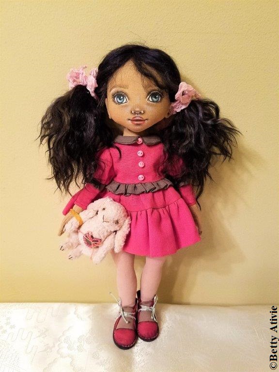 A 9-inch one-of-a-kind painted cloth doll by Lorna Paris is featured. #dollart #lornaparis #artistdoll #oneofakinddoll #OOAKdoll #clothdoll #blackclothdoll