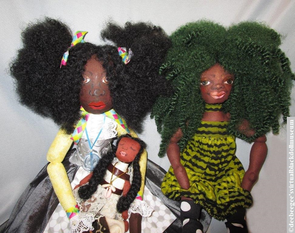 Three mixed-media art dolls by Tiffani Dean of La Diva Dolls are in today’s installation. #OOAKdolls, #clothdolls, #blackclothdolls, #ladivadolls #naturalhairdolls #artdolls