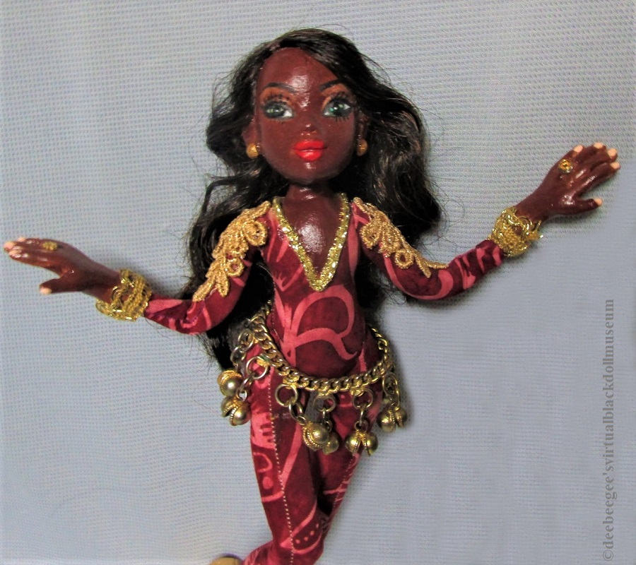 Name: Anita Gold Made by and When: Joy Griffis of Joffee Diva Dolls, 2020 Material: Polymer clay face and hands, stuffed cloth body Marks: None Height: 10 inches Hair, Eyes, Mouth: Synthetic dark brown hair with auburn highlights, painted brown eyes, closed mouth with painted red lips Clothes: Sewn-on burgundy and pink catsuit is embellishedContinue reading “Joffee Diva Anita Gold”