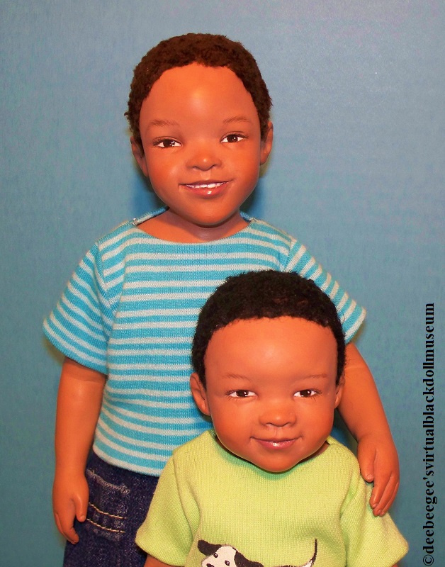 Name: Portraits of Caleb and Logan Made by and When: Ping Lau, 2008 Material: Resin heads, shoulder plates, arms, and legs; stuffed brown cloth bodies Marks: Hand-signed on the backs: Ping Lau/2008/Portrait of Caleb (and) Ping Lau/2008/Portrait of Logan Height: 13 and 10 inches Hair, Eyes, Mouth: Yarn clippings for the hair (auburn yarn forContinue reading “Portraits of Caleb and Logan”