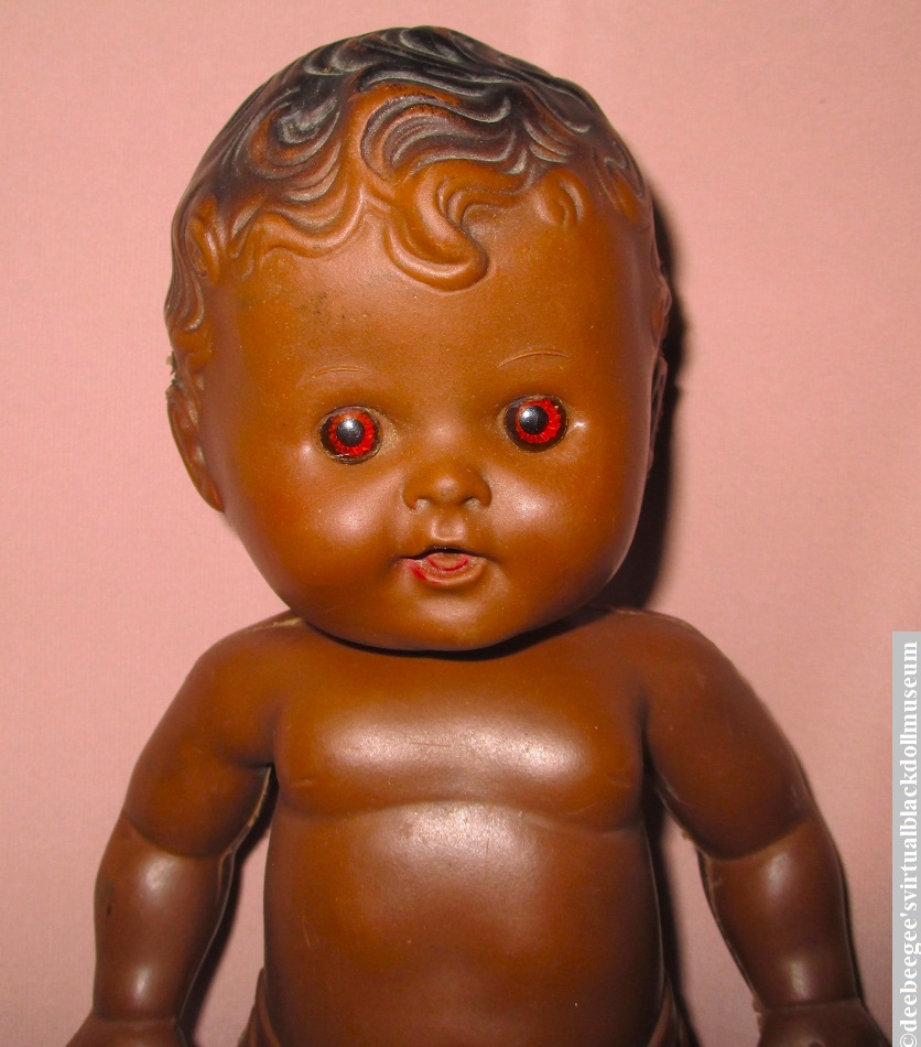 Tod-L-Tot is a 1950s soft rubber squeezable drink-and-wet doll by The Sun Rubber Company. #rubberdoll #sunrubbercompany #blackdoll #vintageblackdoll #drinkandwetdoll