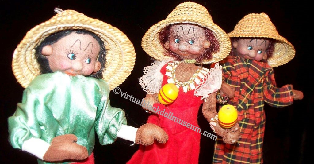 Three blow mold plastic Caribbean Island souvenir dolls, ca. 1950s-1970s, are featured. #souvenirdolls #caribbeanislandsouvenirdolls #blacksouvenirdolls #martiniquesouvenirdoll