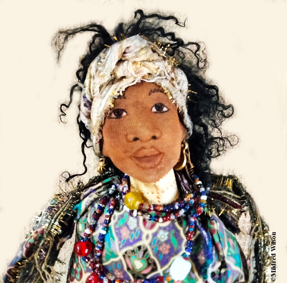 Woman of Light is a one-of-a-kind soft-sculptured doll by the late Marcella Welch. #softsculptureddoll, #clothdoll #artistdoll #marcellawelch #ooakdoll #ooakclothdoll #stumpdoll